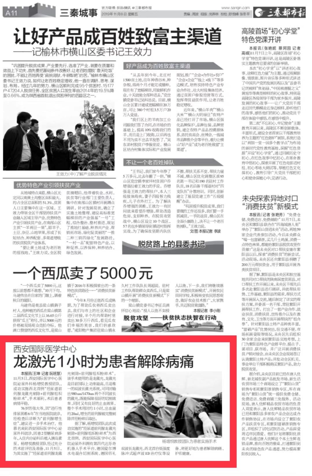 三秦都市報(bào)報(bào)道—龍激光1小時(shí)為患者解除病痛。點(diǎn)擊閱讀。