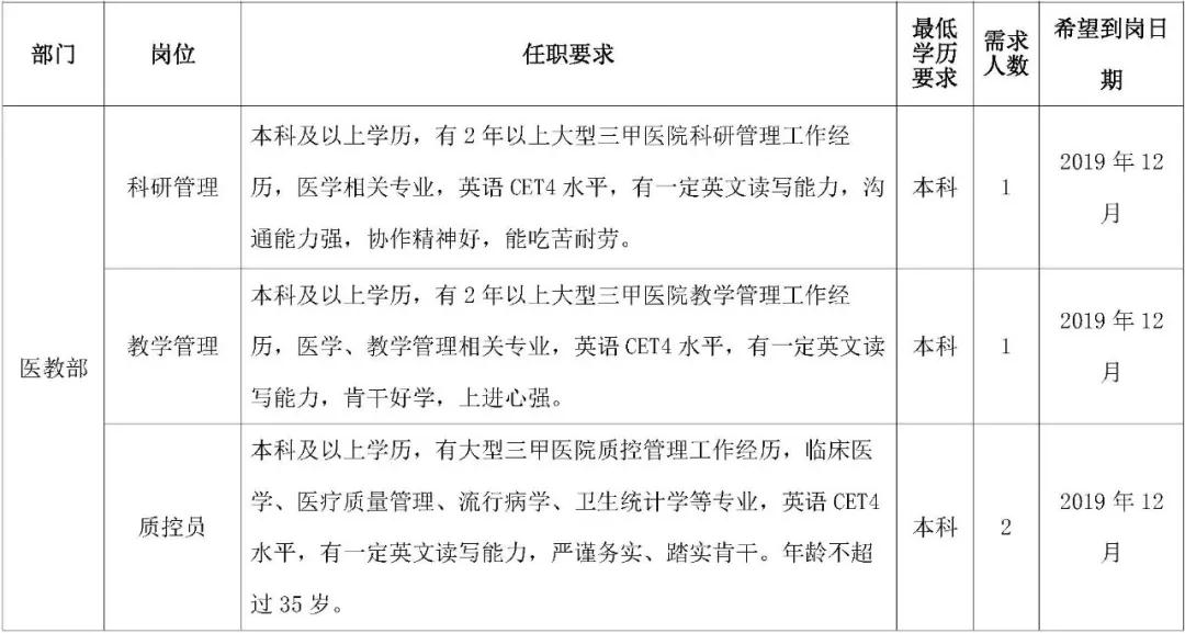 擁護黨的路線、方針、政策;遵守國家法律、法規(guī);熱愛本職工作,責任心強,有良好的職業(yè)道德,認同國際醫(yī)學價值理念,愿意投身醫(yī)療事業(yè);所學專業(yè)必須與應聘崗位要求相符或必須具有相關從業(yè)經(jīng)歷。