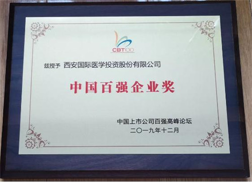 為表彰2019年中國(guó)上市百強(qiáng)企業(yè)和杰出企業(yè)家取得的杰出成績(jī),論壇為到會(huì)的中國(guó)百強(qiáng)企業(yè)頒發(fā)了“中國(guó)百強(qiáng)企業(yè)獎(jiǎng)”及部分個(gè)人獎(jiǎng)項(xiàng),西安國(guó)際醫(yī)學(xué)投資股份有限公司喜獲 “中國(guó)百強(qiáng)企業(yè)獎(jiǎng)”殊榮。