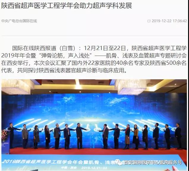 12月21日、22日,在陜西省超聲醫(yī)學(xué)工程學(xué)2019年年會上,西安國際醫(yī)學(xué)中心醫(yī)院將攜手空軍軍醫(yī)大學(xué)西京醫(yī)院、唐都醫(yī)院,交大一附院、二附院,陜西省人民醫(yī)院,陜西省腫瘤醫(yī)院等十家大醫(yī)院開展大型公益系列活動。