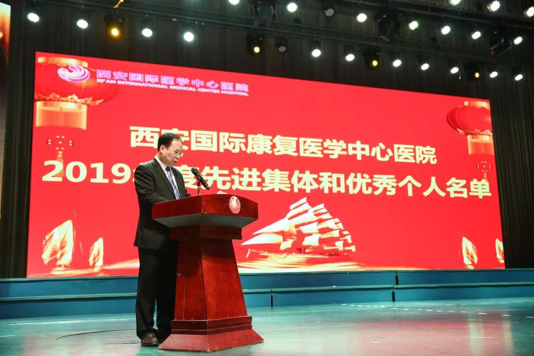 凱歌高奏辭舊歲,春風(fēng)得意迎新年。12月27日,西安國際醫(yī)學(xué)中心醫(yī)院2019年度年終總結(jié)暨表彰大會在吉源國際酒店舉行。國際醫(yī)學(xué)副總裁孫文國、西安國際醫(yī)學(xué)中心醫(yī)院院長尹強(qiáng)、財(cái)務(wù)總監(jiān)權(quán)穩(wěn)延、副院長楊峰、副院長李武平以及各??漆t(yī)院、各科室領(lǐng)導(dǎo)等出席。大會由西安國際醫(yī)學(xué)中心醫(yī)院總經(jīng)理王志峰主持。1000余名員工齊聚一堂,總結(jié)回顧2019,共話奮斗歷程,共享成功喜悅,共繪發(fā)展藍(lán)圖。