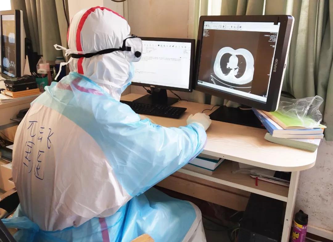 一個班次工作結(jié)束,兀云飛脫下防護服已是大汗淋漓。“剛來的時候,穿著防護裝備看片速度有些慢,不過經(jīng)過一段時間適應(yīng)后快多了,我多看一個片子,就有一個人多一份希望。”兀云飛說。