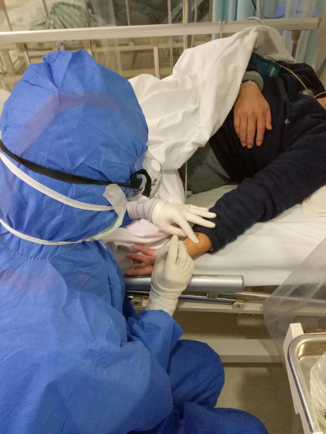 病區(qū)當(dāng)天收治了36位重癥患者,雖然早有準(zhǔn)備,但現(xiàn)實(shí)比張波想象的復(fù)雜。N95口罩和外科口罩、帽子、防護(hù)服、手套、長(zhǎng)靴套、隔離衣、眼罩……層層防護(hù)服下,張波的視覺、聽覺、觸覺都受到影響。視線受限于起霧的護(hù)目鏡,寬大厚實(shí)的手掌戴了好幾層手套,原本動(dòng)脈采血、靜脈采血、留置針穿刺、輸液以及生命體征測(cè)量等熟悉的基本治療,操作起來(lái)異常艱難。