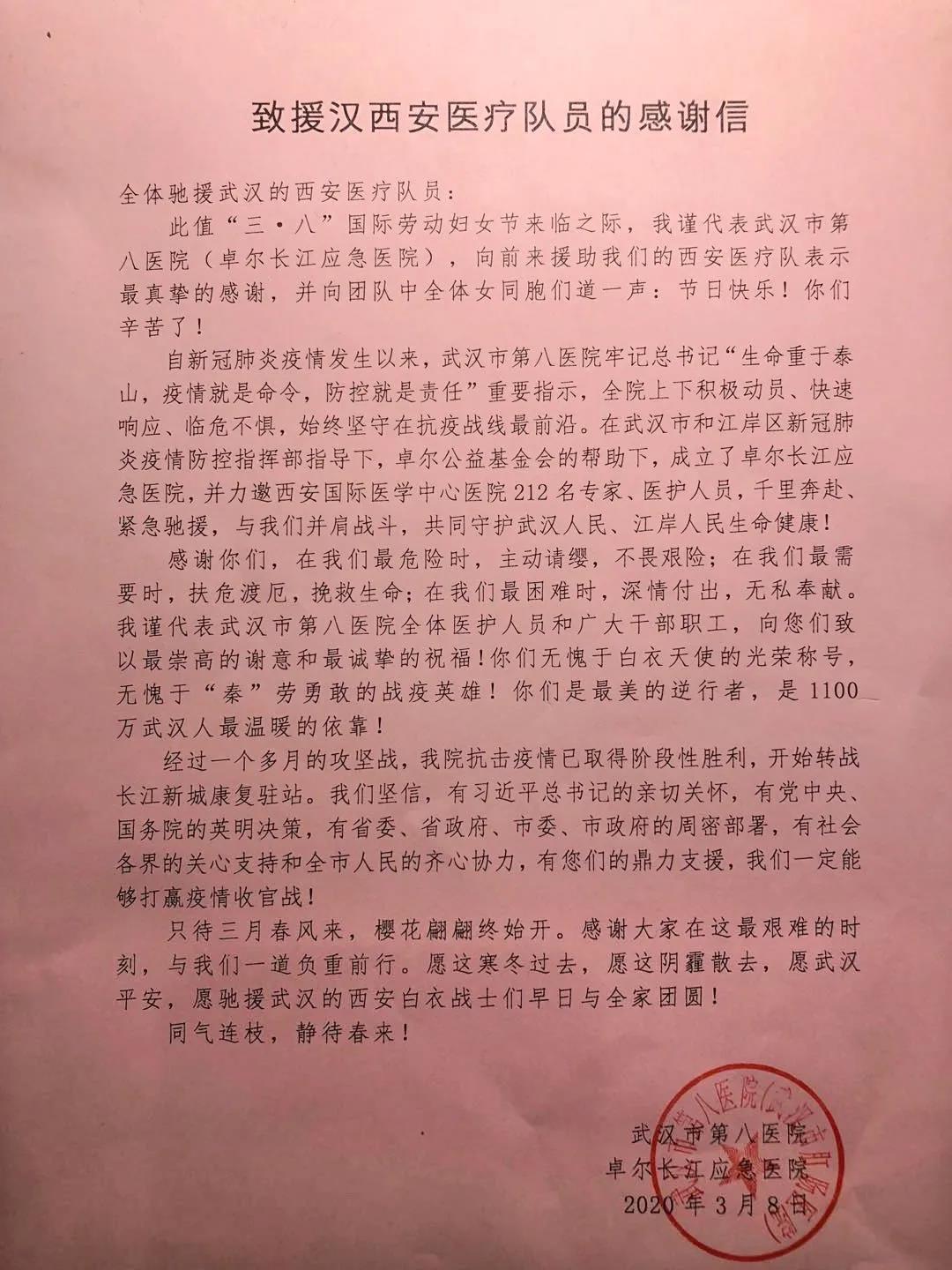 “英姿巾幗秀,輝映半邊天!”武漢市江岸區(qū)蔣志耕副區(qū)長對(duì)醫(yī)療隊(duì)里的女醫(yī)護(hù)們給予高度評(píng)價(jià):你們是最美逆行者,祝你們節(jié)日快樂!