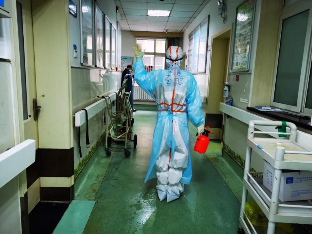 穿著笨重的防護服,戴著厚厚的手套,滿是水霧的護目鏡,增加了我的穿刺難度,我認真的篩選血管,一針見血穿刺成功。當我有條不紊的固定完畢,抬起頭時,爺爺豎起了大拇指,對我說:“丫頭,你們真?zhèn)ゴ?,這才是真正的白衣天使呀!”為了不浪費醫(yī)療物資,穿防護期間我們不上衛(wèi)生間,不喝水。雖然很累,但卻值得。