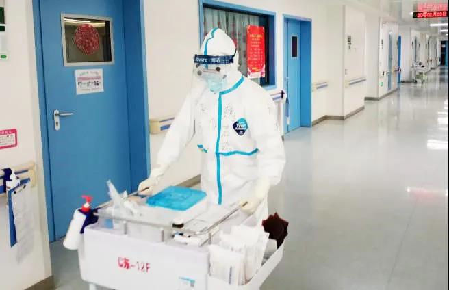 經(jīng)過(guò)40分鐘的車(chē)程、層層“武裝”后,我迅速投入工作狀態(tài):處理污染區(qū)垃圾、輸液、量體溫、抽血、協(xié)助患者服藥到口、執(zhí)行醫(yī)囑等等基礎(chǔ)操作和生活護(hù)理。身處一線(xiàn)的每一秒,我都在心里給自己默敲警鐘。責(zé)任所在,不容紕漏。清楚記得初上戰(zhàn)場(chǎng)時(shí),盡管已進(jìn)行大量嚴(yán)格培訓(xùn),我仍感到有些緊張。但說(shuō)來(lái)奇怪,當(dāng)我真正接觸到這些樂(lè)觀積極的患者時(shí),一股油然而生的親切感、使命感平復(fù)了我的忐忑。