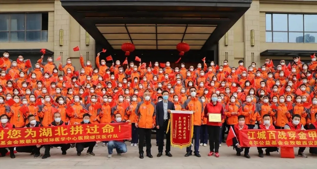 2月3日,在湖北武漢疫情嚴峻,一床難求的時刻,應(yīng)卓爾公益基金會邀請,西安援漢醫(yī)療隊首批212名專家及醫(yī)護人員抵漢,火線投入卓爾長江應(yīng)急醫(yī)院(武漢市第八醫(yī)院)的患者救治中,接管2個重癥病區(qū)、4個普通病區(qū)。第二批16名專家隨后抵漢增援,共228名白衣戰(zhàn)士經(jīng)過一個多月的持續(xù)奮戰(zhàn),累計收治新冠患者330人,極大緩解武漢市江岸區(qū)患者收治壓力,取得救治工作的重大勝利。診療結(jié)束后,又轉(zhuǎn)戰(zhàn)卓爾康復(fù)驛站,擔(dān)負500多名康復(fù)人員的診療護理工作。其間,援漢醫(yī)療隊派出60人的醫(yī)護工作團隊馳援卓爾隨州應(yīng)急醫(yī)院,救治患者146名,圓滿完成了艱巨的診療救治任務(wù)。