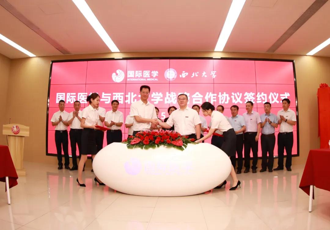 5月24日上午,國際醫(yī)學(xué)與西北大學(xué)戰(zhàn)略合作協(xié)議簽署暨西北大學(xué)附屬醫(yī)院授牌及揭牌儀式在西安國際醫(yī)學(xué)中心融媒體中心熱烈舉行。陜西省衛(wèi)健委主任劉寶琴、西北大學(xué)黨委書記王亞杰、黨委常委、副校長常江、生命科學(xué)與醫(yī)學(xué)部教授趙鋼;國際醫(yī)學(xué)實(shí)際控制人劉建申、董事長史今、黨委書記、總裁劉瑞軒等領(lǐng)導(dǎo)出席儀式。劉瑞軒總裁主持儀式。