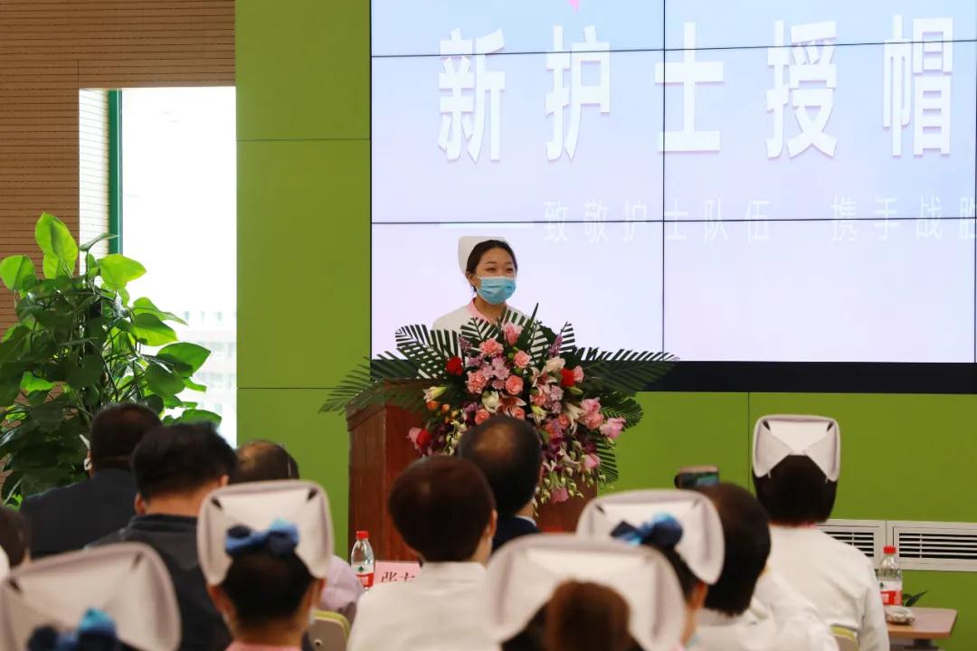 血液凈化中心護(hù)士張晶代表全院240名新入職護(hù)士發(fā)言,她說,戴在頭上的不單單是一頂燕尾帽,它是責(zé)任,是使命,是擔(dān)當(dāng),更是對(duì)新護(hù)士們的殷切希望。新冠疫情襲來時(shí),前輩們用實(shí)際行動(dòng)闡釋“南丁格爾精神”和“國(guó)際醫(yī)學(xué)精神”,新護(hù)士們將傳承使命,用平凡的工作佑護(hù)無法衡量的價(jià)值!