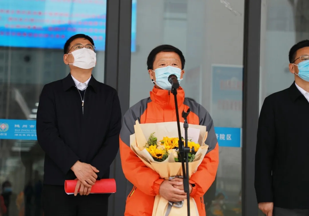 王海昌代表醫(yī)療隊(duì)感謝隨州市委市政府的大力支持與關(guān)愛(ài),感謝隨州市中心醫(yī)院、卓爾控股集團(tuán)和來(lái)自方方面面的支持幫助和關(guān)心關(guān)愛(ài),感謝患者的理解和配合,感謝醫(yī)療隊(duì)隊(duì)員們的不畏艱險(xiǎn)、勇于奉獻(xiàn)、勇于擔(dān)當(dāng)。他說(shuō),我們和隨州的友誼長(zhǎng)存。隨州加油,湖北加油,中國(guó)加油!