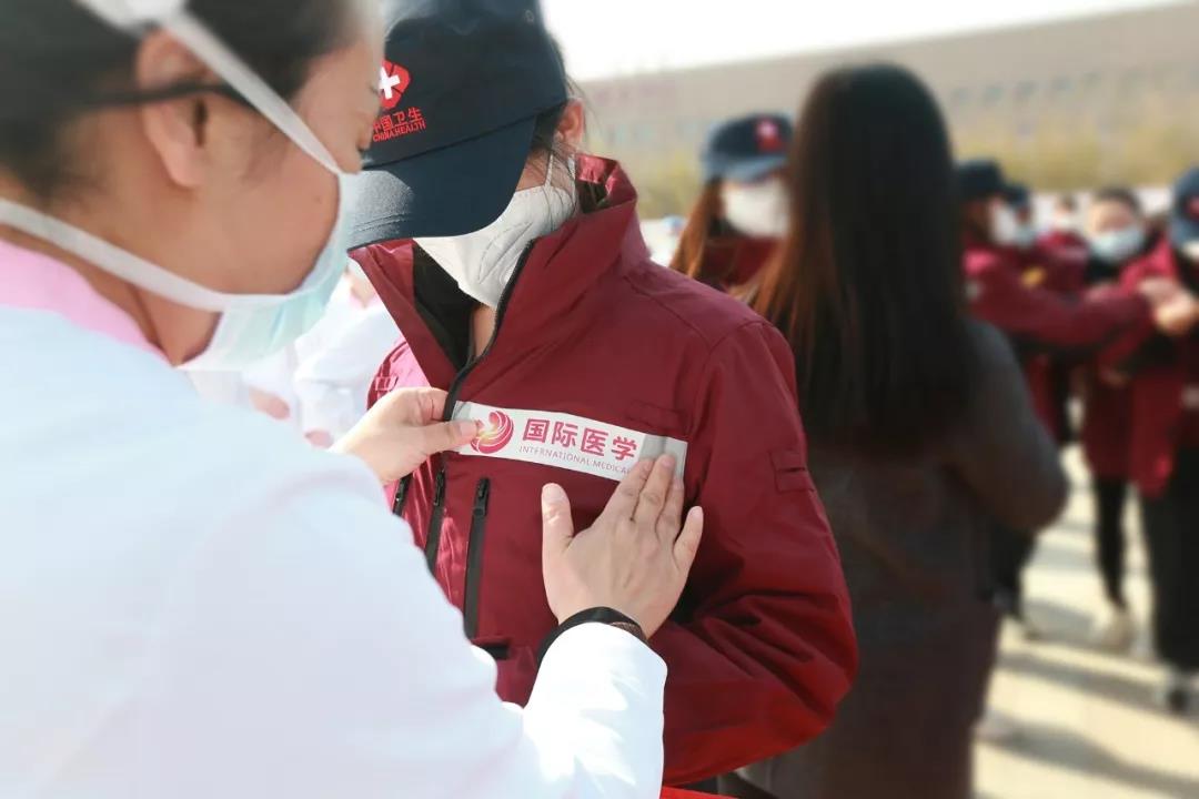 “每一次集結(jié)號(hào)吹響,你們都奮勇向前,在疫情面前無(wú)私奉獻(xiàn)、敢于擔(dān)當(dāng),正是因?yàn)槲覀冇写髳?。?guó)際醫(yī)學(xué)人時(shí)時(shí)刻刻都不忘初心、牢記使命,用行動(dòng)踐行我們的誓言:施天使之愛,佑百姓健康!”董事長(zhǎng)史今在儀式上向出征隊(duì)員致敬并叮囑隊(duì)員們一定要保護(hù)好自己,“零感染、高質(zhì)量、共克時(shí)艱,出色完成患者的救治任務(wù)。你們帶去的是陜西人民對(duì)武漢人民的深情厚誼,要讓黨旗在一線高高飄揚(yáng)!和武漢人民一起共度難關(guān)!”