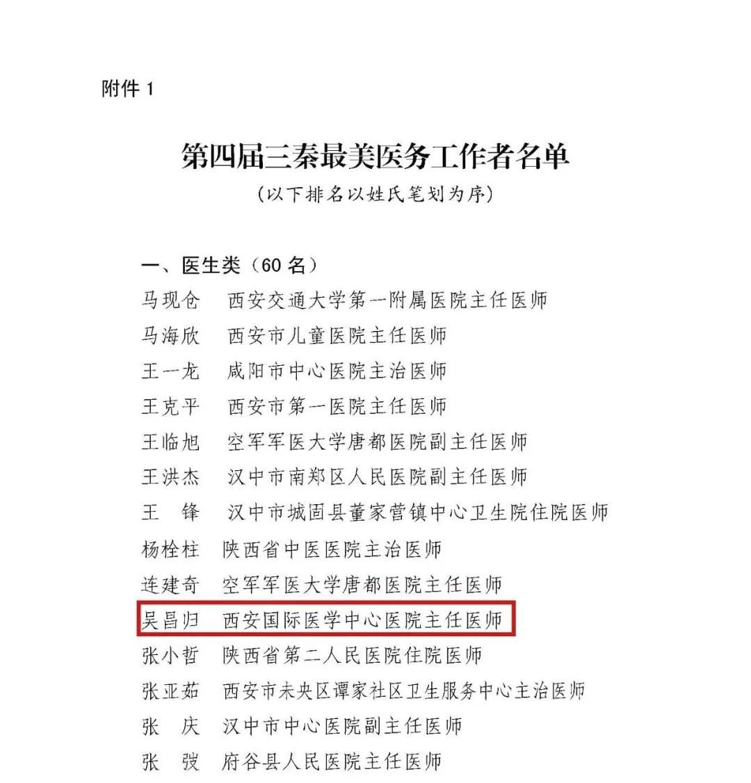 日前,陜西省衛(wèi)健委授予西安國(guó)際醫(yī)學(xué)中心醫(yī)院胸科醫(yī)院吳昌歸院長(zhǎng)“第四屆三秦最美醫(yī)務(wù)工作者”榮譽(yù)稱號(hào)。