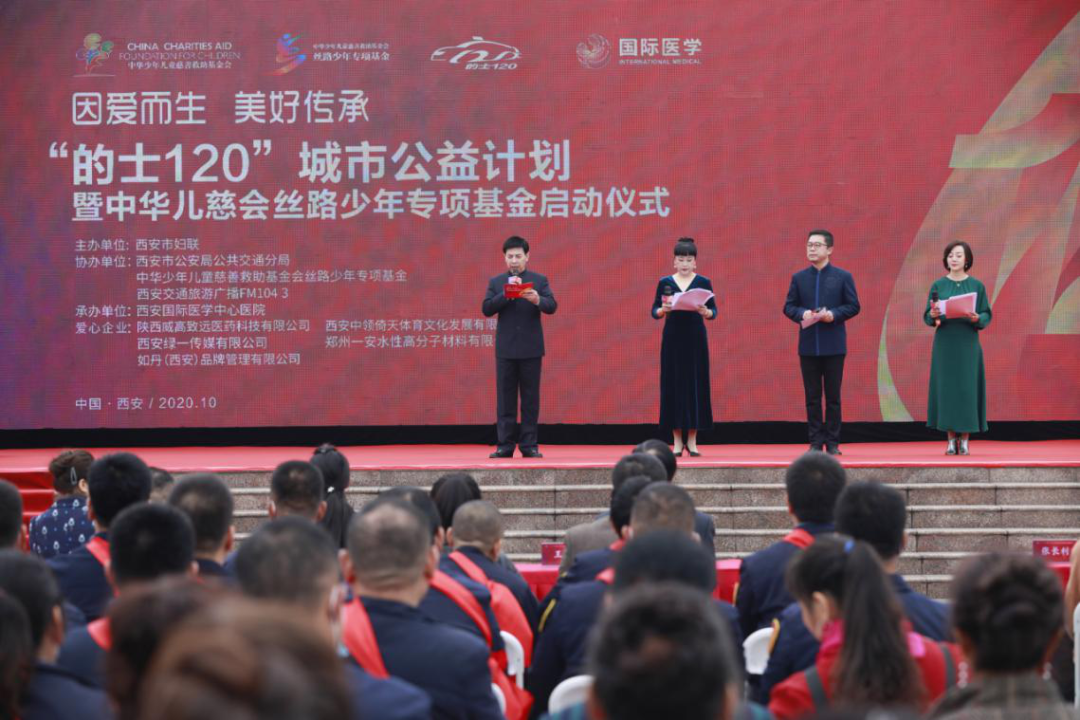 由西安市婦聯(lián)主辦,西安市公安局公共交通分局、中華少年兒童慈善救助基金會(huì)絲路少年專項(xiàng)基金以及西安交通旅游廣播FM104.3協(xié)辦,西安國(guó)際醫(yī)學(xué)中心醫(yī)院承辦“的士120”城市公益計(jì)劃暨中華兒慈會(huì)絲路少年專項(xiàng)基金啟動(dòng)儀式在這里隆重舉行。