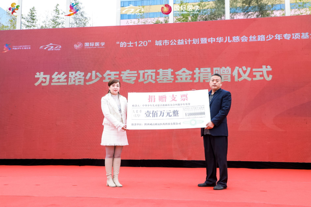活動(dòng)現(xiàn)場(chǎng),中華少年兒童慈善救助基金會(huì)理事長(zhǎng)兼秘書長(zhǎng)王林為絲路少年專項(xiàng)基金進(jìn)行了授牌。陜西威高致遠(yuǎn)醫(yī)藥科技有限公司傾情捐贈(zèng)100萬(wàn)元善款,用于為全國(guó)境內(nèi)0-18周歲的腦癱、自閉癥、呼吸疾病、先天性心臟病、先天性小耳畸形等困境患兒提供醫(yī)療服務(wù)。