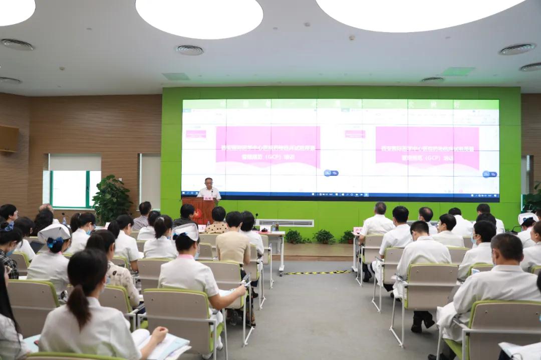 為推動我院藥物臨床試驗機構(gòu)備案工作的順利進行,8月20日,西安國際醫(yī)學(xué)中心醫(yī)院舉辦藥物臨床試驗質(zhì)量管理規(guī)范(GCP)培訓(xùn)。尹強院長、楊峰副院長、各??漆t(yī)院院長、科室負責(zé)人及醫(yī)務(wù)人員共200余人參加。會議由楊峰副院長主持。