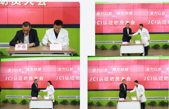 尹強(qiáng)院長與專科醫(yī)院院長、臨床科室、醫(yī)技科室、檢驗(yàn)中心及機(jī)關(guān)職能部門主任、代表,簽署了《評(píng)審目標(biāo)責(zé)任書》。消化病醫(yī)院執(zhí)行院長韓國宏、腫瘤一病區(qū)黎冬梅護(hù)士長分別發(fā)言,一致表示,一定積極參與、配合、支持相關(guān)工作,為我院順利通過JCI認(rèn)證工作全力以赴!