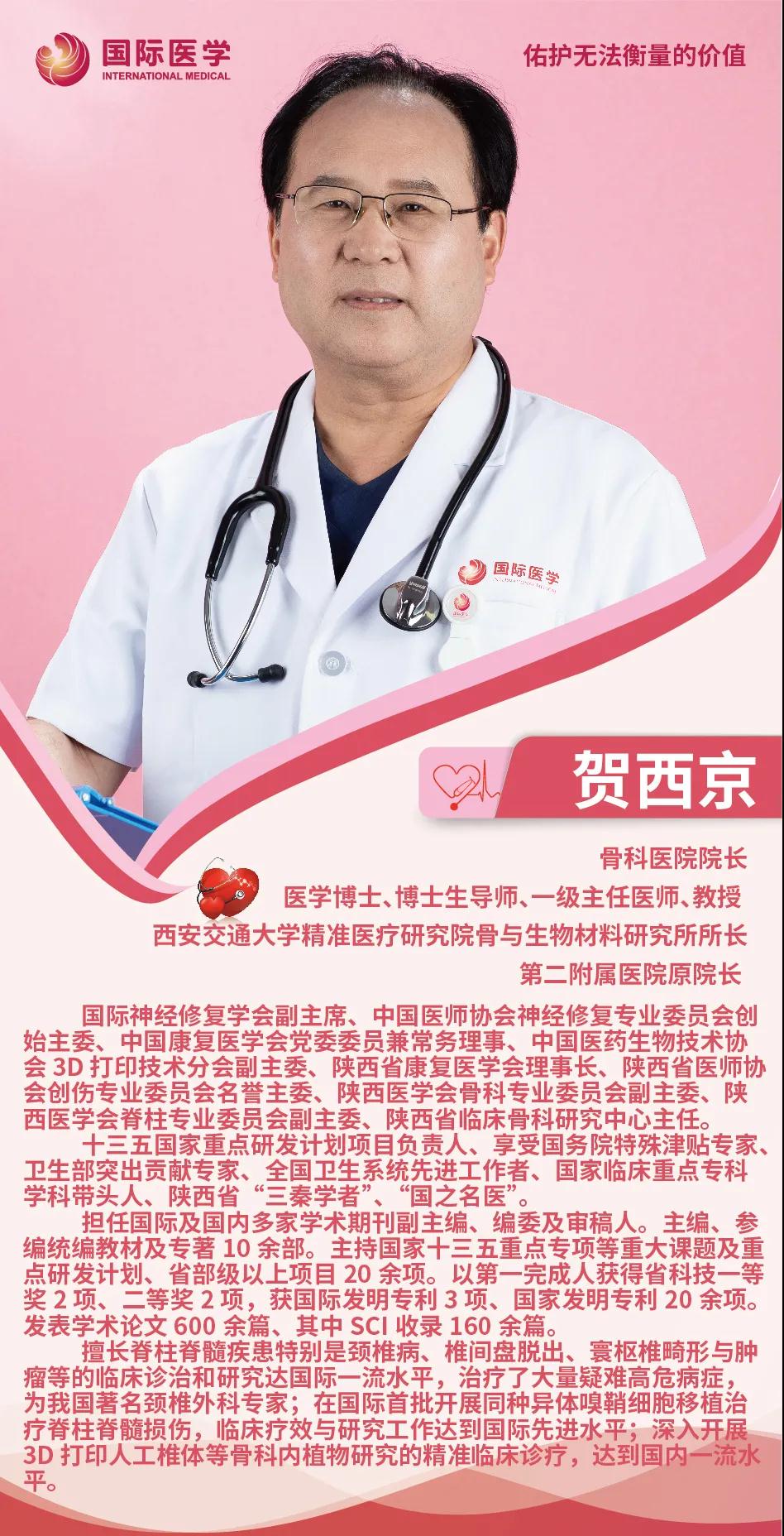 近年來,賀西京院長深入開展 3D 打印人工椎體等骨科內(nèi)植物研究的精準臨床診療,創(chuàng)建國內(nèi)一流水平的手術(shù)方法及規(guī)程。賀西京教授的團隊在國際上創(chuàng)新性地提出了椎體次全切術(shù)后“可動人工椎體——椎間盤復(fù)合體”植入、重建頸椎運動單位功能的理念,研制出“可動人工頸椎假體”和人工寰齒關(guān)節(jié),同時,還應(yīng)用嗅鞘細胞移植治療脊髓損傷,并在多家三甲醫(yī)院進行推廣應(yīng)用。