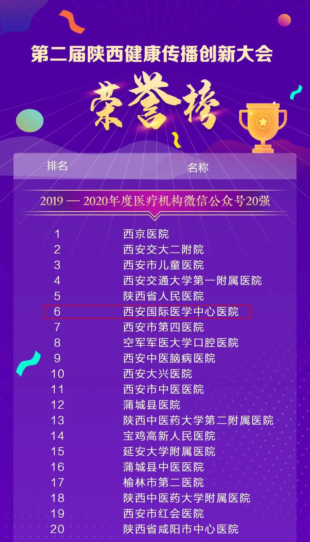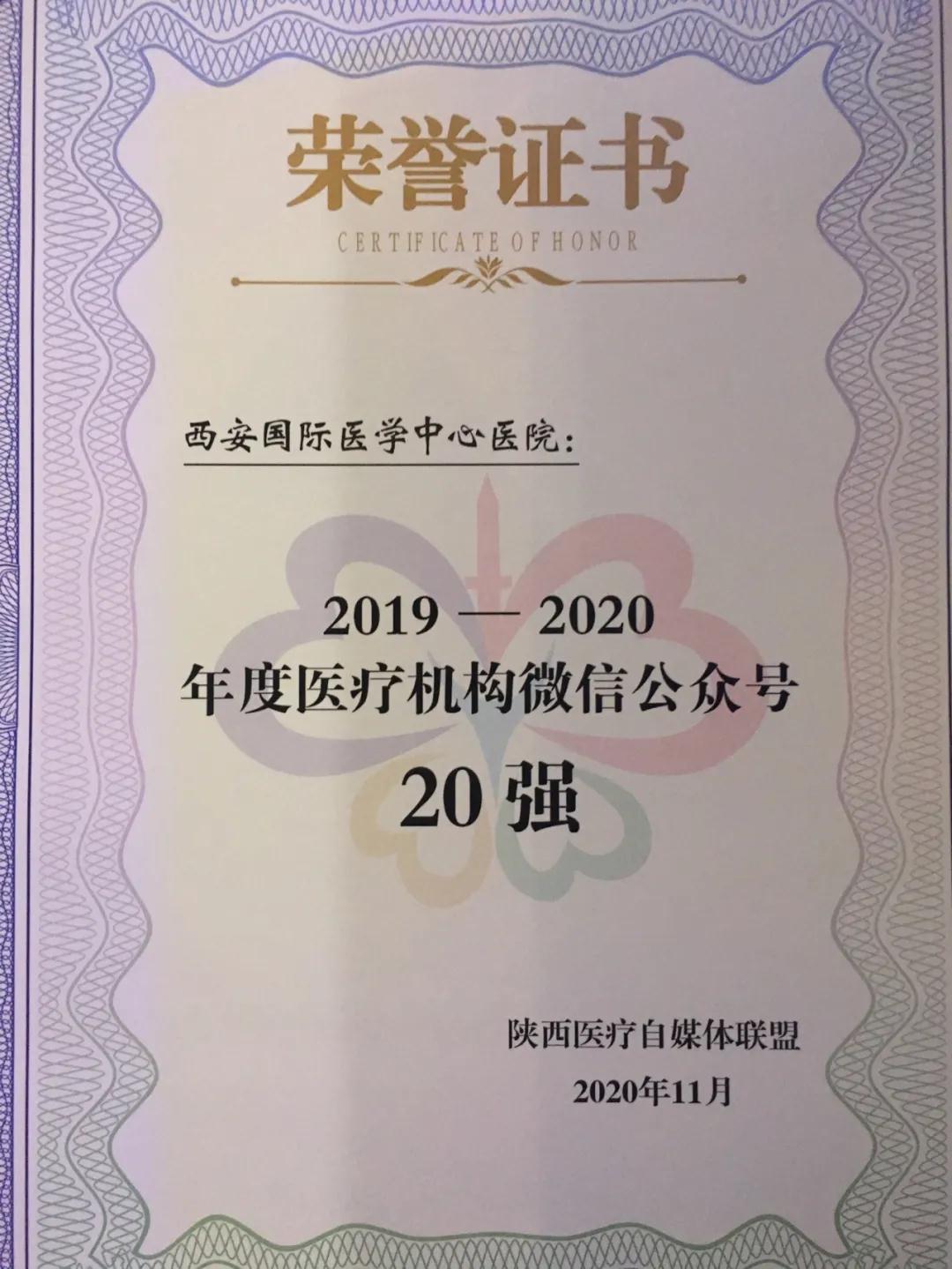 11月25日,由陜西省衛(wèi)生健康委員會(huì)、陜西省醫(yī)師協(xié)會(huì)指導(dǎo),陜西醫(yī)療自媒體聯(lián)盟、陜西省衛(wèi)生健康干部培訓(xùn)中心承辦的第二屆陜西健康傳播創(chuàng)新大會(huì)在西安召開(kāi)。西安國(guó)際醫(yī)學(xué)中心醫(yī)院微信公眾號(hào)榮獲2020年陜盟醫(yī)療機(jī)構(gòu)微信公眾號(hào)第六名。