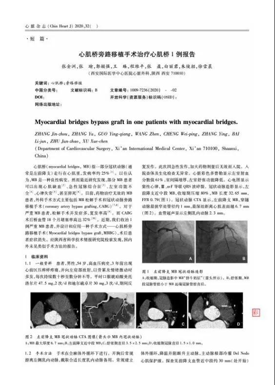 近日,西安國(guó)際醫(yī)學(xué)中心醫(yī)院心臟病醫(yī)院副院長(zhǎng)張金洲教授等撰寫(xiě)的“Myocardial bridge Bypass Graft: a Novel Surgical Procedure for Extensive Myocardial Bridges”(心肌橋旁路移植手術(shù):治療廣泛心肌橋的一種新的外科術(shù)式)被心胸外科領(lǐng)域的頂級(jí)期刊Ann Thorac Surg接受,代表西安國(guó)際醫(yī)學(xué)中心醫(yī)院心臟外科首創(chuàng)的這一術(shù)式得到國(guó)際同行的認(rèn)可。2020年4月,張金洲教授首次應(yīng)用這一術(shù)式治療一例難治性廣泛心肌橋病人,取得滿意的療效。隨后,心血管領(lǐng)域國(guó)內(nèi)權(quán)威期刊《心臟雜志》以快速通道的方式報(bào)道了這一術(shù)式,引起國(guó)內(nèi)同行和患者的關(guān)注。至此,我院心臟外科首創(chuàng)技術(shù)獲得國(guó)內(nèi)外同行的認(rèn)可。