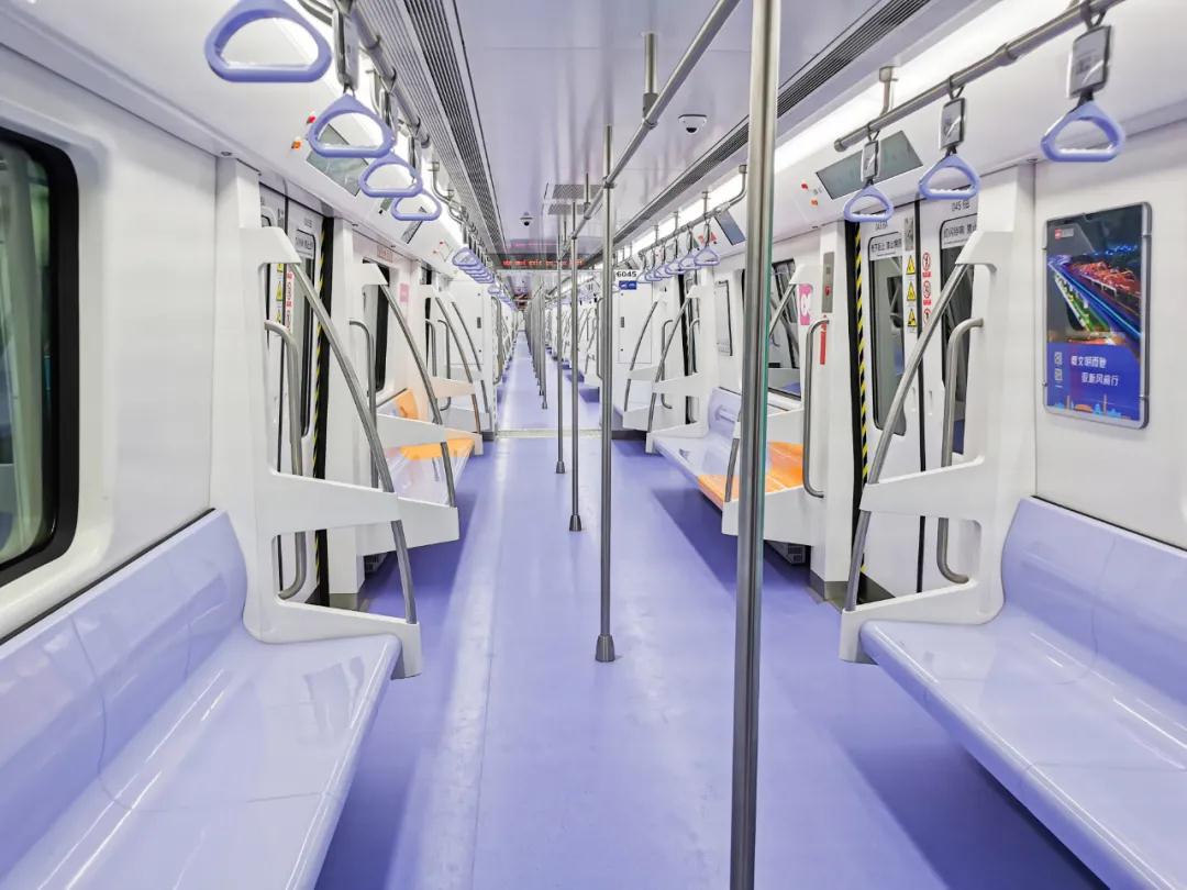 28日上午,小編乘坐開往西安國際醫(yī)學(xué)中心方向的6號線地鐵。該車車身腰線為一抹清新“星空藍(lán)”,車內(nèi)裝飾為點(diǎn)點(diǎn)淡雅“香芋紫”;車門上方的LCD顯示屏,既有整體線路、運(yùn)行狀態(tài)等基本信息,也有列車抵達(dá)下一站的預(yù)計(jì)時(shí)間,更有站臺層扶梯、直梯與洗手間的位置等便民信息;橙黃色的愛心座椅自帶加熱功能,科技感十足,有顏值,更便捷!