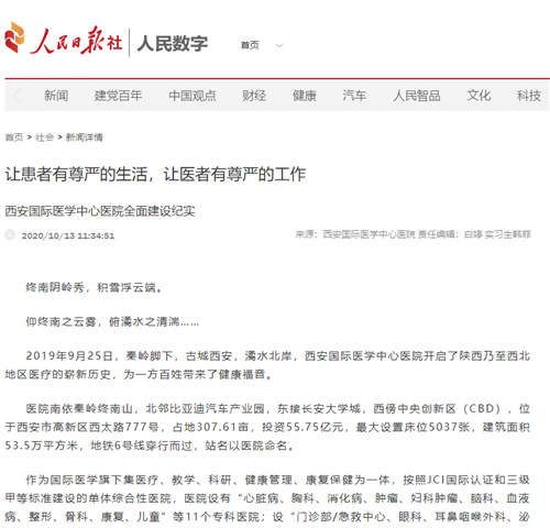 2020年央媒上的西安國(guó)際醫(yī)學(xué)中心醫(yī)院好故事。