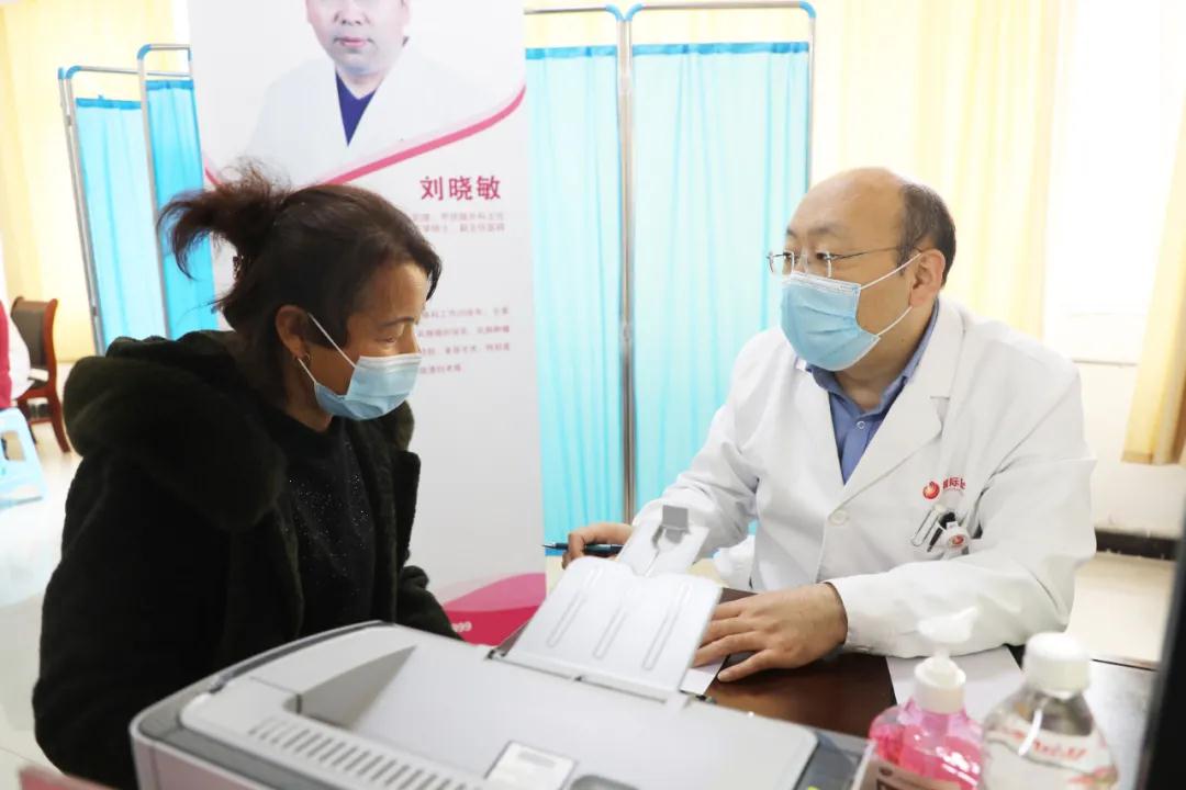 在診室里,一位57歲的患者拿著病歷和影像資料前來(lái)咨詢,劉曉敏主任為她做了全面檢查,并普及乳腺疾病的防治保健知識(shí)。