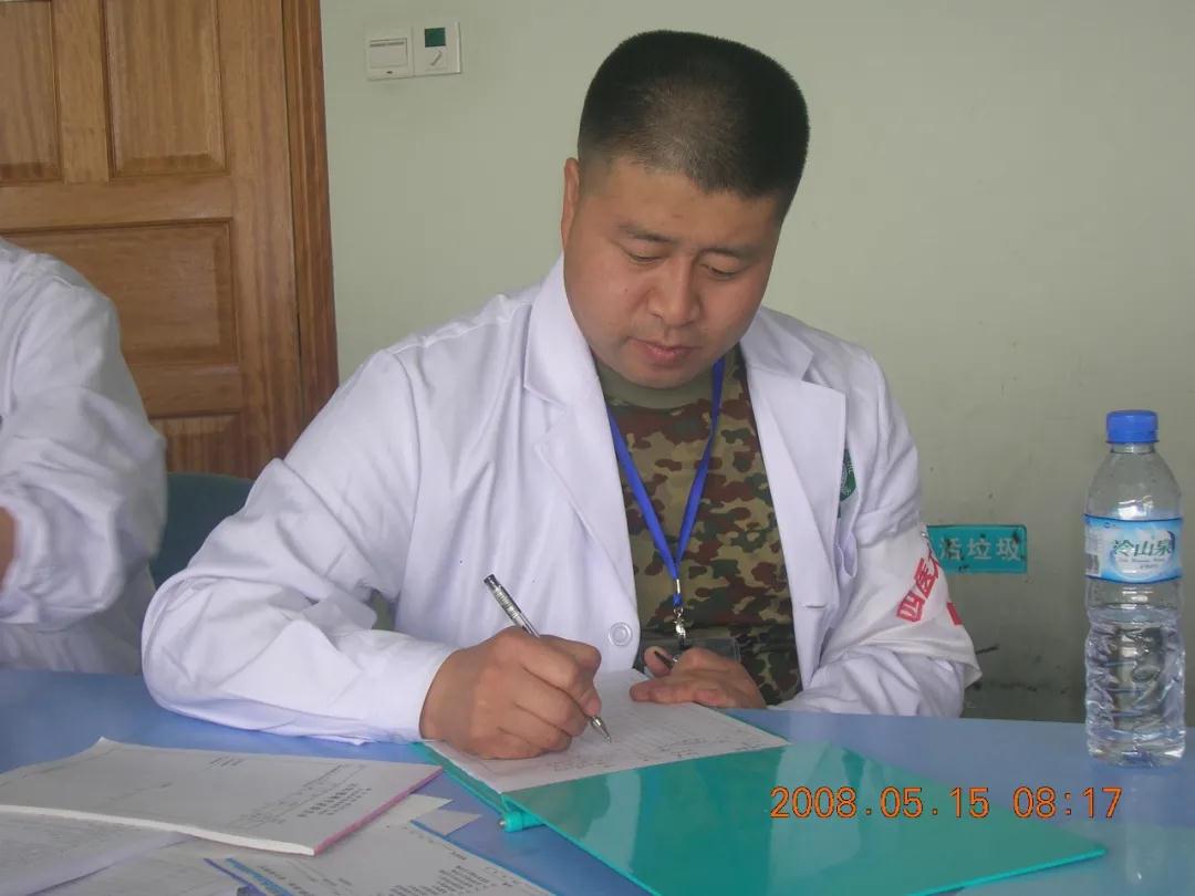 14時28分,山河破碎,天崩地裂,西安有強(qiáng)烈震感。李占亭撥開向室外沖的人潮,逆行進(jìn)入透析室,在天旋地轉(zhuǎn)中幫助尚在透析的患者下機(jī)。安置好患者,他才想起在唐都醫(yī)院家屬院的妻子和不滿2歲的幼女。“若有戰(zhàn),召必至”,當(dāng)天晚上,李占亭響應(yīng)號召,收拾行囊準(zhǔn)備出發(fā)。急救包、迷彩服、膠鞋、手電筒、巧克力、壓縮餅干、礦泉水、紙巾是他的裝備。沒有人知道他將面臨怎樣的危險與挑戰(zhàn)。
