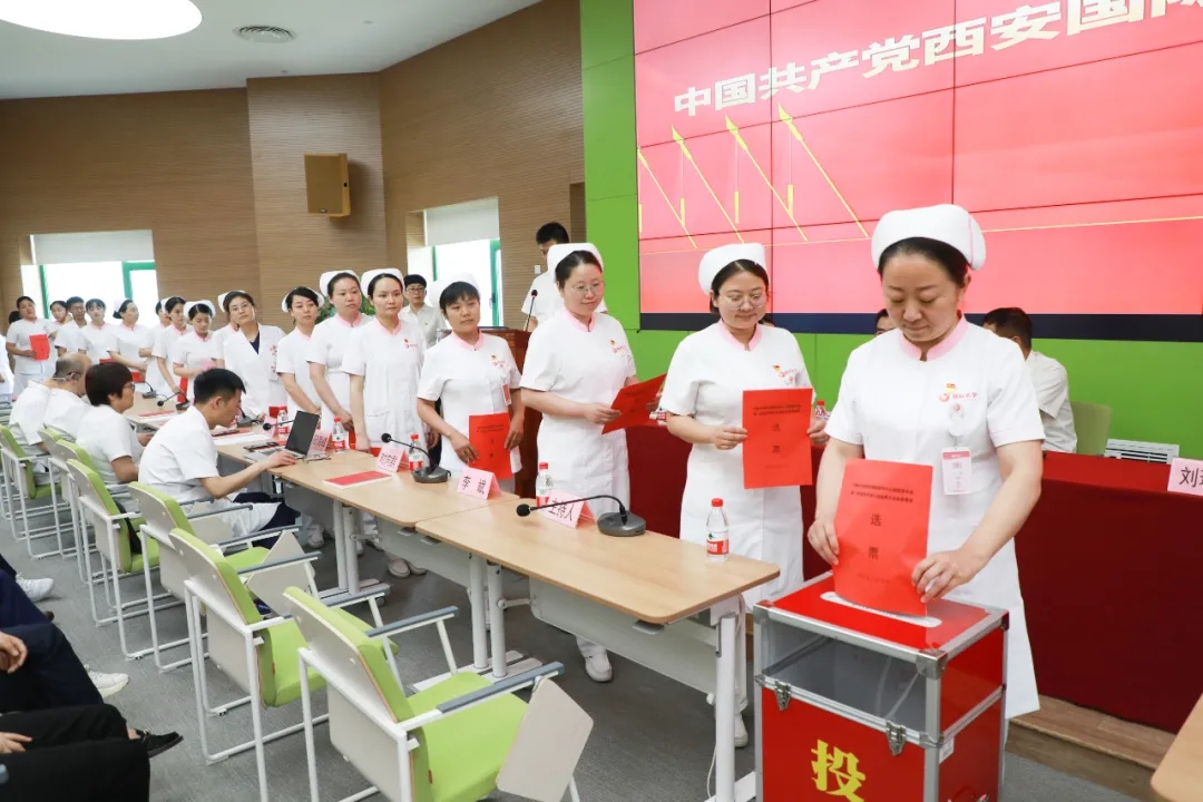 醫(yī)教部副主任馮軍強(qiáng)宣讀了《中共西安國(guó)際醫(yī)學(xué)投資股份有限公司委員會(huì)關(guān)于同意西安國(guó)際醫(yī)學(xué)中心有限公司黨支部升格為黨委的批復(fù)》、《大會(huì)選舉辦法》(草案);護(hù)理部主任張敏同志宣讀總監(jiān)票人,監(jiān)計(jì)票人員名單,經(jīng)過與會(huì)代表審議并通過。
