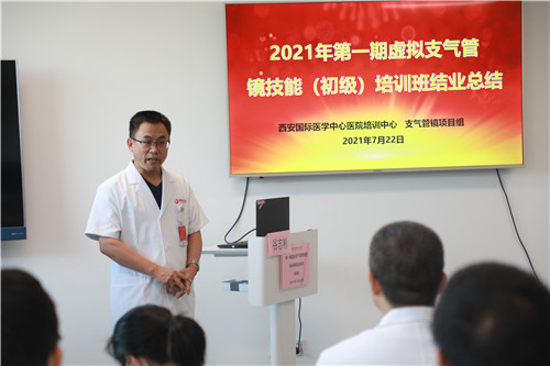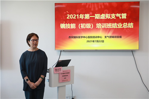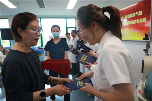在結(jié)業(yè)典禮上,李武平院長(zhǎng)頒發(fā)培訓(xùn)證書(shū),對(duì)結(jié)業(yè)學(xué)員表示祝賀;對(duì)來(lái)自支氣管鏡檢查室、培訓(xùn)中心兼職教師谷志彬教授的專(zhuān)業(yè)素養(yǎng)與辛苦付出表示贊揚(yáng);對(duì)康福霞主任帶領(lǐng)下的培訓(xùn)中心工作團(tuán)隊(duì)給予高度肯定。同時(shí)李院長(zhǎng)指出:“每一段看似結(jié)束的培訓(xùn)旅程、都應(yīng)是每位學(xué)員職業(yè)生涯新的開(kāi)始。國(guó)際醫(yī)學(xué)培訓(xùn)中心作為醫(yī)生的“圖書(shū)館”,應(yīng)當(dāng)時(shí)刻了解臨床所需,充分利用各種高端模擬設(shè)備,建立完善的課程體系,助力更多臨床醫(yī)生時(shí)刻充電;學(xué)員應(yīng)當(dāng)積極參加并珍惜每一次培訓(xùn)機(jī)會(huì),豐滿(mǎn)自己羽翼?!?