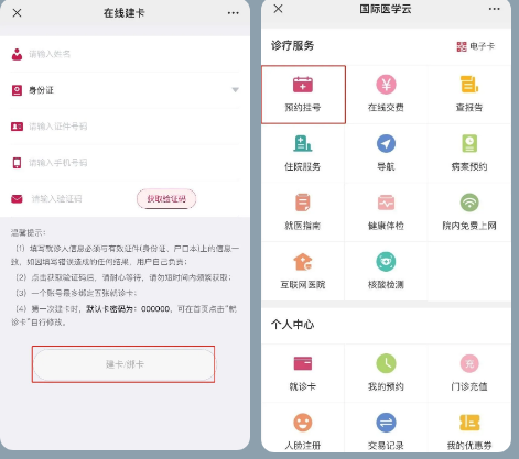 3、輸入個人信息完成就診卡綁定。綁卡后,點擊【預(yù)約掛號】
