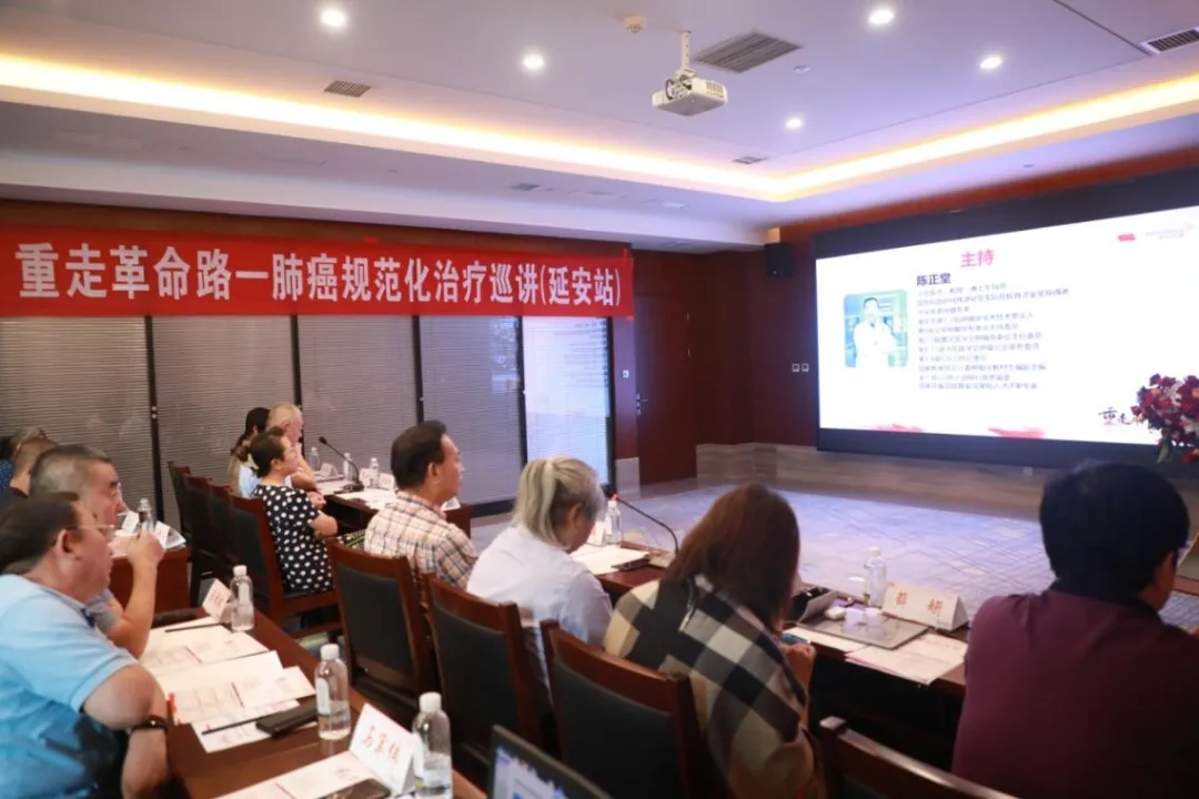 “重走革命路,肺癌規(guī)范化治療巡講-延安站”活動(dòng)于在7月31日下午進(jìn)行。上海交通大學(xué)醫(yī)學(xué)院附屬新華醫(yī)院副院長(zhǎng)陳昶教授、西安國(guó)際醫(yī)學(xué)中心醫(yī)院腫瘤醫(yī)院院長(zhǎng)南克俊教授、延安大學(xué)附屬醫(yī)院腫瘤科主任趙紅教授致辭。在“統(tǒng)籌全局,重新出發(fā)”、“與時(shí)俱進(jìn),走向希望”、“星火燎原,革命之路”三個(gè)環(huán)節(jié)中,延安、上海、遵義三地的專家們通過(guò)視頻會(huì)議各抒己見(jiàn),博采眾長(zhǎng),就肺癌治療領(lǐng)域的諸多問(wèn)題進(jìn)行了充分地交流。西安國(guó)際醫(yī)學(xué)中心醫(yī)院胸科醫(yī)院李文海副院長(zhǎng)、腫瘤醫(yī)院薛妍副院長(zhǎng)分別作了題為《ASCO NSCLC術(shù)后輔助治療進(jìn)展》、《ASCO NSCLC晚期治療進(jìn)展》的報(bào)告,放射治療中心陸軍主任與腫瘤三病區(qū)劉金鵬主任主持并參與了討論。