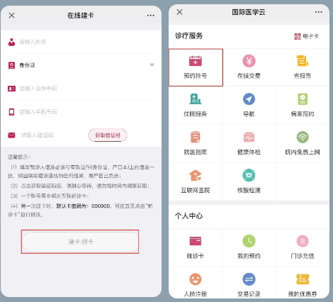 3、輸入個(gè)人信息完成就診卡綁定。綁卡后,點(diǎn)擊【預(yù)約掛號】