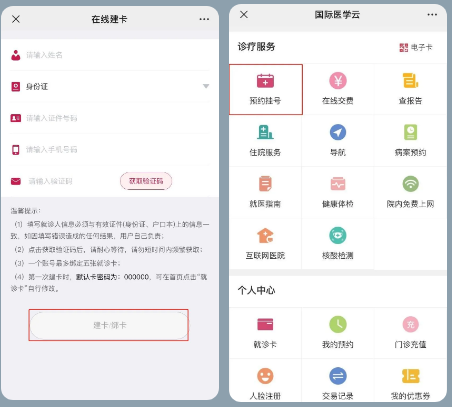 3、輸入個(gè)人信息完成就診卡綁定。綁卡后,點(diǎn)擊【預(yù)約掛號(hào)】