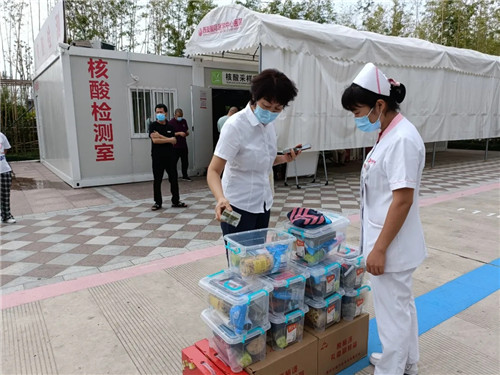 在第四屆“中國(guó)醫(yī)師節(jié)”到來之際,我院開展了主題為“百年華誕同筑夢(mèng),醫(yī)者擔(dān)當(dāng)踐初心”醫(yī)師節(jié)系列活動(dòng)。通過多學(xué)科義診、走訪慰問等多個(gè)主題的活動(dòng),大力弘揚(yáng)大醫(yī)精誠(chéng)的崇高精神,彰顯新時(shí)代醫(yī)師風(fēng)采。醫(yī)院工會(huì)對(duì)戰(zhàn)斗在一線的醫(yī)務(wù)工作者進(jìn)行了慰問,把醫(yī)院領(lǐng)導(dǎo)的溫暖和工會(huì)組織的關(guān)懷,送到了一線醫(yī)務(wù)工作者的心坎里。工會(huì)主席李曉芳帶隊(duì),前往發(fā)熱門診、急救中心、預(yù)防保健科、檢驗(yàn)中心等科室,為醫(yī)務(wù)人員送上慰問品。