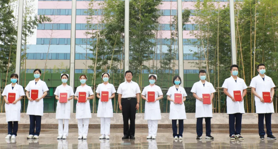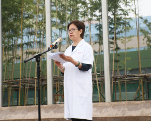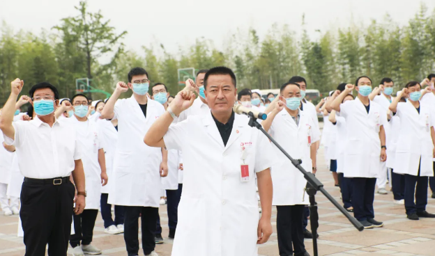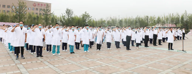 最后,劉延彤院長(zhǎng)助理帶領(lǐng)全體新入職員工舉起右手,莊嚴(yán)宣誓,鏗鏘有力的誓言在萬(wàn)人廣場(chǎng)久久回蕩。