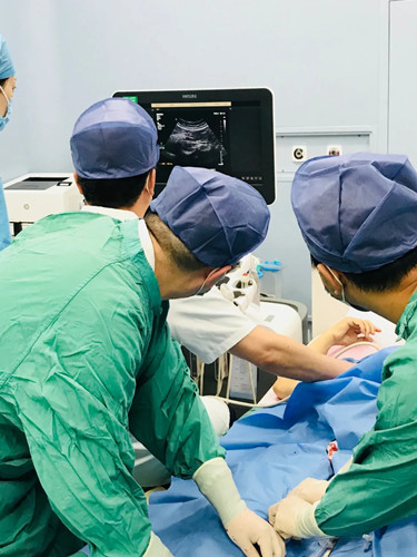 為了更好的服務(wù)患者,確保每一位患者都能得到最適合自己的治療方案,心臟外科二病區(qū)程亮主任團(tuán)隊(duì)聯(lián)合超聲診療中心韓增輝副主任團(tuán)隊(duì),于8月2日為一位75歲老人在超聲引導(dǎo)下順利完成下行腔靜脈濾器置入術(shù)?;颊呷∑脚P位,右髖外旋,右膝略屈,右側(cè)腹股溝常規(guī)消毒鋪巾,2%利多卡因5ml局部麻醉,右側(cè)股靜脈穿刺,置入導(dǎo)絲,確認(rèn)導(dǎo)絲進(jìn)入下腔靜脈,順導(dǎo)絲置入鞘管,拔出導(dǎo)絲,確認(rèn)鞘管頂端位于腎靜脈水平以下、匯合部以上的下腔靜脈腔內(nèi),以頂桿推入濾器至鞘管頂端,超聲定位,釋放濾器,超聲觀察:濾器打開順利,位置正常,形態(tài)良好,彩色血流示:顯示濾器內(nèi)血流通暢。