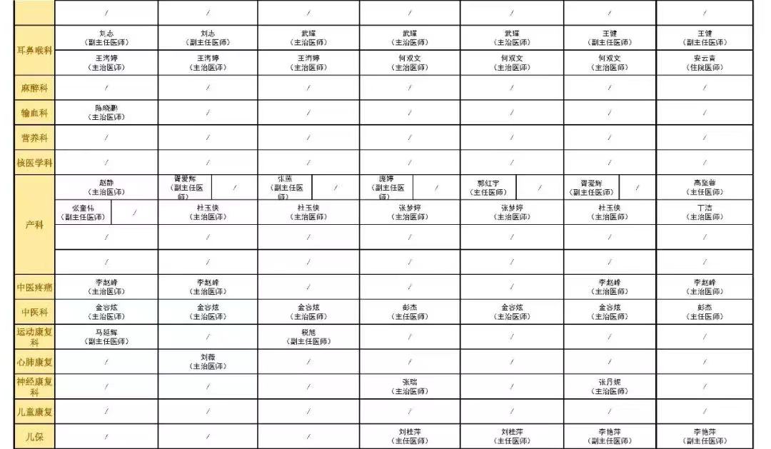 國慶假期門診安排表
