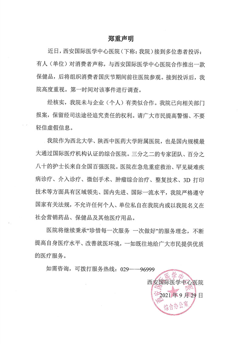 • 國內(nèi)首家高分通過JCI認證的醫(yī)院 西安國際醫(yī)學中心醫(yī)院為國內(nèi)首家高分通過JCI認證的醫(yī)院,該稱號由國際醫(yī)療機構(gòu)認證聯(lián)合委員會頒布。