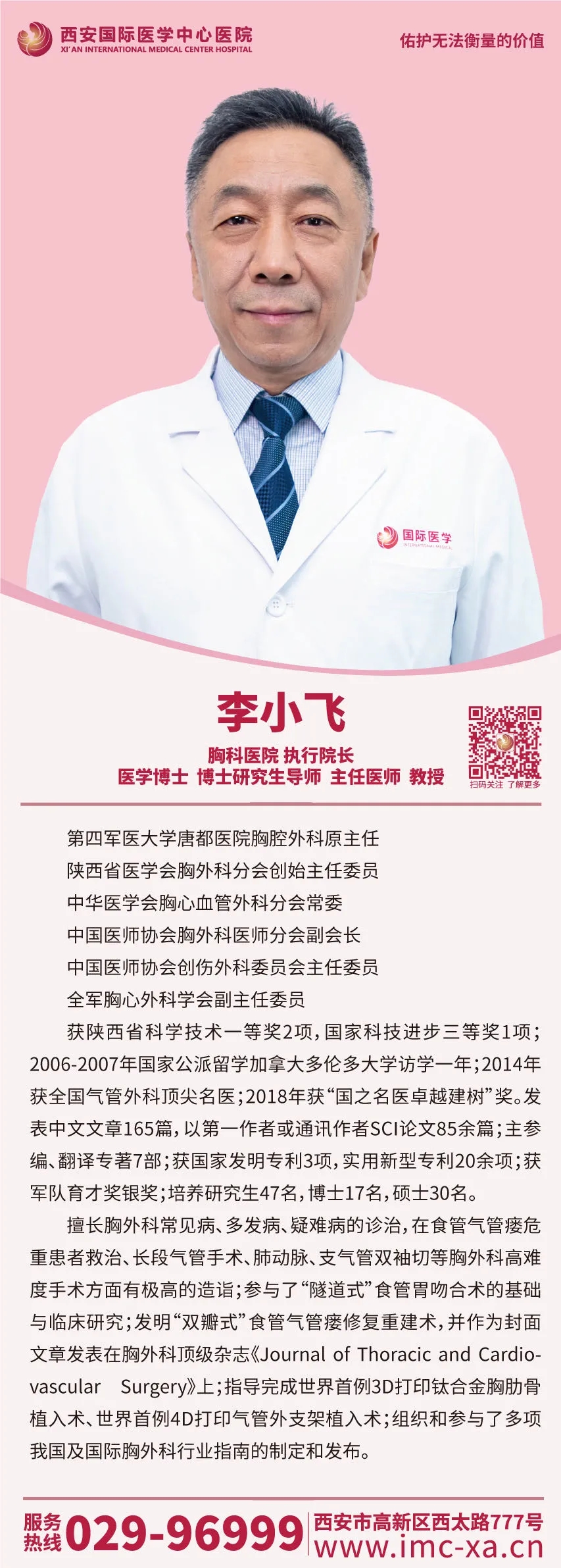 10月21日,著名胸科專家、第四軍醫(yī)大學(xué)唐都醫(yī)院胸腔外科原主任李小飛教授加盟西安國際醫(yī)學(xué)中心醫(yī)院,任胸科醫(yī)院執(zhí)行院長,為醫(yī)院發(fā)展注入強勁動力,促進(jìn)醫(yī)院專業(yè)學(xué)科水平躍上新臺階。