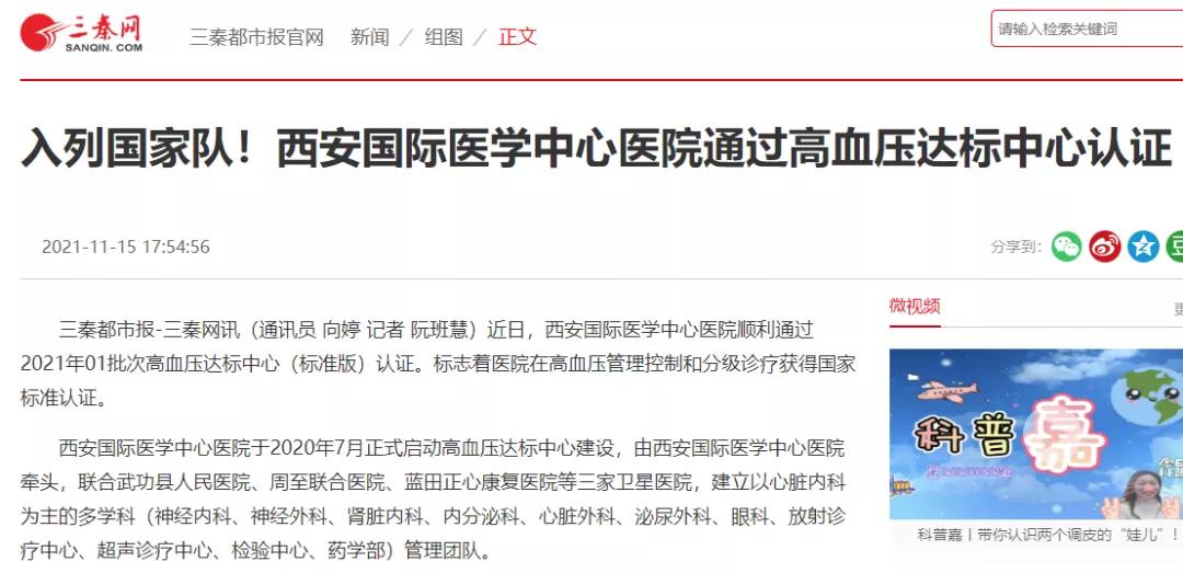 入列國家隊(duì)!西安國際醫(yī)學(xué)中心醫(yī)院通過高血壓達(dá)標(biāo)中心認(rèn)證