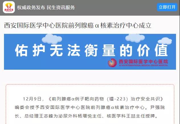 西安國(guó)際醫(yī)學(xué)中心醫(yī)院前列腺癌α核素治療中心成立