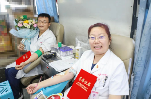 “無償獻血已經(jīng)成為我和我愛人生活的一部分,作為醫(yī)務(wù)工作者,我們更明白血液的稀缺與珍貴,多獻一份血就可能多一份希望?!笔峙鯓s譽證書與鮮花的西安國際醫(yī)學中心醫(yī)院消化內(nèi)科三病區(qū)蘇娟副主任醫(yī)師笑著說。蘇娟和丈夫張惠林同為西安國際醫(yī)學中心醫(yī)院消化內(nèi)科醫(yī)生,醫(yī)生夫妻的儀式感始于對生命的敬畏與奉獻,在西安國際醫(yī)學中心醫(yī)院2022年無償獻血日活動頒獎儀式上,夫妻二人分獲一、二等獎。