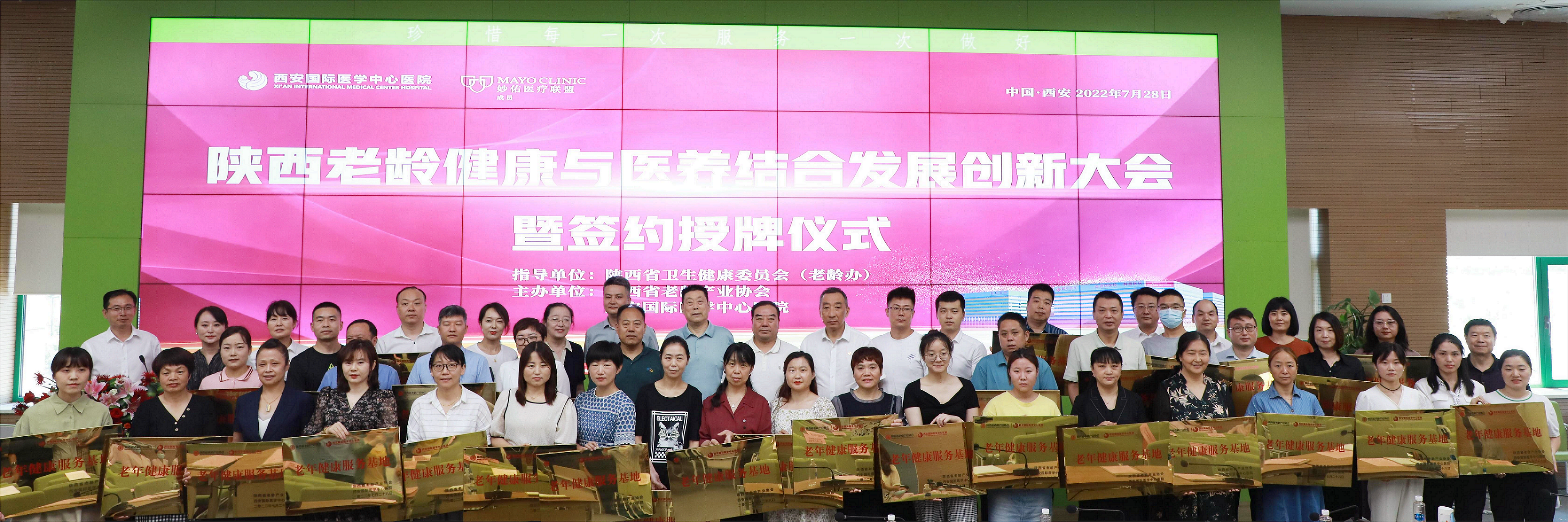 7月28日,西安國(guó)際醫(yī)學(xué)中心醫(yī)院與陜西省老齡產(chǎn)業(yè)協(xié)會(huì)主辦的陜西老齡健康與醫(yī)養(yǎng)結(jié)合發(fā)展創(chuàng)新大會(huì)暨簽約授牌儀式在醫(yī)院召開。來(lái)自西安、漢中、延安、寶雞、渭南、商洛等地區(qū)的全省38家養(yǎng)老機(jī)構(gòu)負(fù)責(zé)人和代表參加本次大會(huì)。陜西省衛(wèi)健委一級(jí)巡視員、陜西省老齡辦常務(wù)副主任藺全鎖,老齡健康處處長(zhǎng)師中榮,陜西省老齡產(chǎn)業(yè)協(xié)會(huì)會(huì)長(zhǎng)周尚、執(zhí)行會(huì)長(zhǎng)侯培琪、秘書長(zhǎng)史嘉玲,西安市老年醫(yī)養(yǎng)結(jié)合學(xué)會(huì)會(huì)長(zhǎng)芮海榮,國(guó)際醫(yī)學(xué)集團(tuán)董事長(zhǎng)史今,西安國(guó)際醫(yī)學(xué)中心醫(yī)院院長(zhǎng)尹強(qiáng)、副院長(zhǎng)張斌、副院長(zhǎng)劉延彤等院部領(lǐng)導(dǎo),協(xié)會(huì)領(lǐng)導(dǎo)及全省各養(yǎng)老機(jī)構(gòu)代表出席本次大會(huì)。