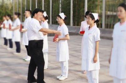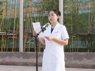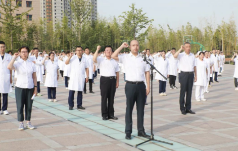 最后,付強副院長帶領全體新員工舉起右手,莊嚴宣誓:“我們是天的使者,以救死扶傷為天職.......”,鏗鏘有力的誓言在萬人廣場久久回蕩。