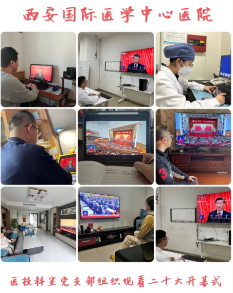 2022年10月16日,中國共產(chǎn)黨第二十次全國代表大會在人民大會堂隆重召開,習近平總書記向大會作了題為《高舉中國特色社會主義偉大旗幟 為全面建設(shè)社會主義現(xiàn)代化國家而團結(jié)奮斗》的報告。西安國際醫(yī)學中心醫(yī)院黨委、各支部委員在院集中收看,其他黨員、群眾根據(jù)疫情防控要求,采取集中和分散相結(jié)合的方式收聽收看了盛會,反響熱烈。