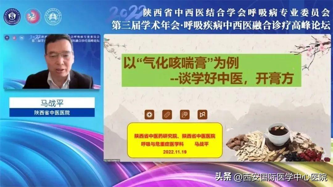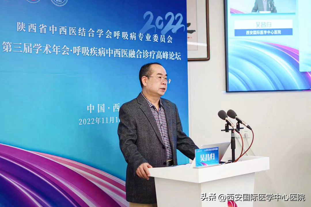 11月19日,由陜西省中西醫(yī)結(jié)合學(xué)會(huì)主辦、陜西省中西醫(yī)結(jié)合學(xué)會(huì)呼吸疾病專(zhuān)業(yè)委員會(huì)和西安國(guó)際醫(yī)學(xué)中心醫(yī)院聯(lián)合承辦的“陜西省中西醫(yī)結(jié)合學(xué)會(huì)呼吸病專(zhuān)委會(huì)第三屆學(xué)術(shù)年會(huì)暨2022呼吸疾病中西醫(yī)融合診療高峰論壇”在我院舉行,會(huì)議采取線上 線下相結(jié)合的方式,由大會(huì)主席、西安國(guó)際醫(yī)學(xué)中心醫(yī)院胸科醫(yī)院院長(zhǎng)吳昌歸主持。