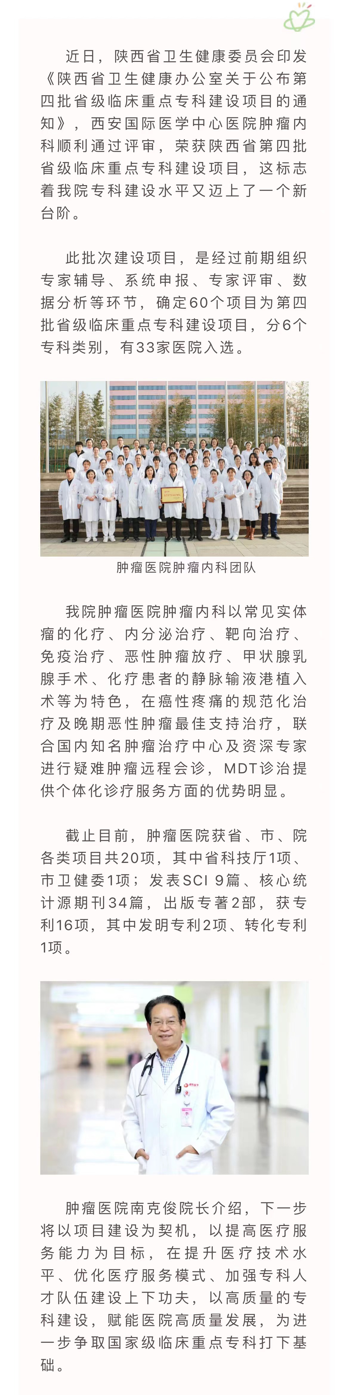 我院腫瘤內(nèi)科榮獲陜西省第四批省級(jí)臨床重點(diǎn)專(zhuān)科建設(shè)項(xiàng)目