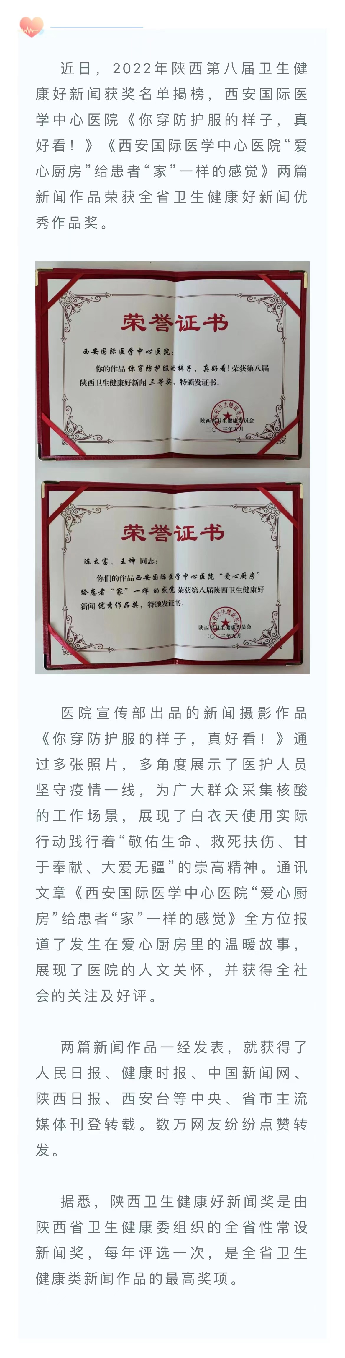 我院兩篇新聞作品榮獲陜西省衛(wèi)生健康好新聞優(yōu)秀作品獎(jiǎng)
