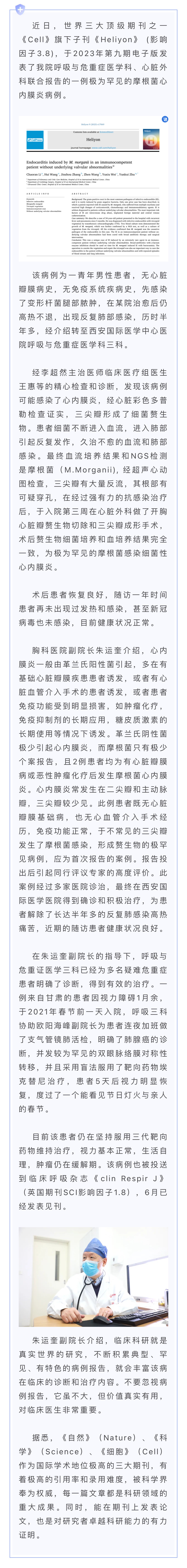 我院呼吸內(nèi)科在《Cell》旗下子刊《Heliyon》報告一例極為罕見的摩根菌心內(nèi)膜炎病例