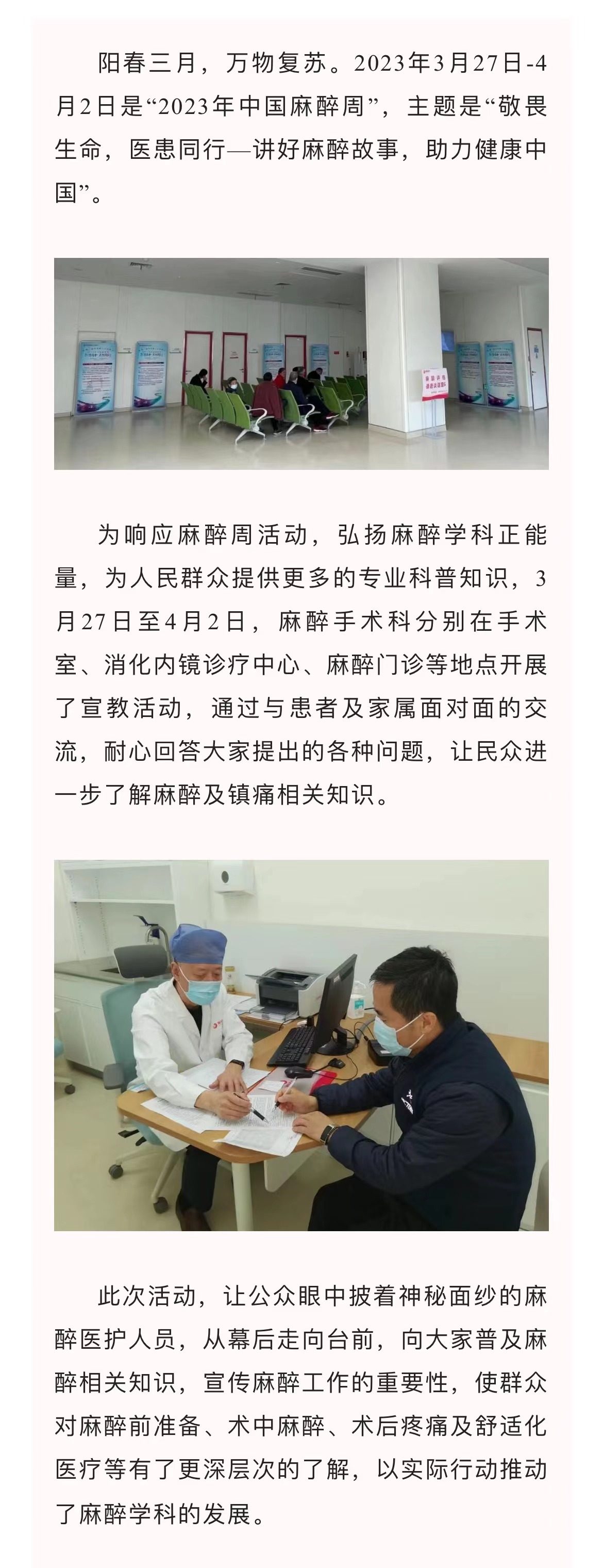 敬畏生命,醫(yī)患同行——我院開(kāi)展“中國(guó)麻醉周”宣教活動(dòng)